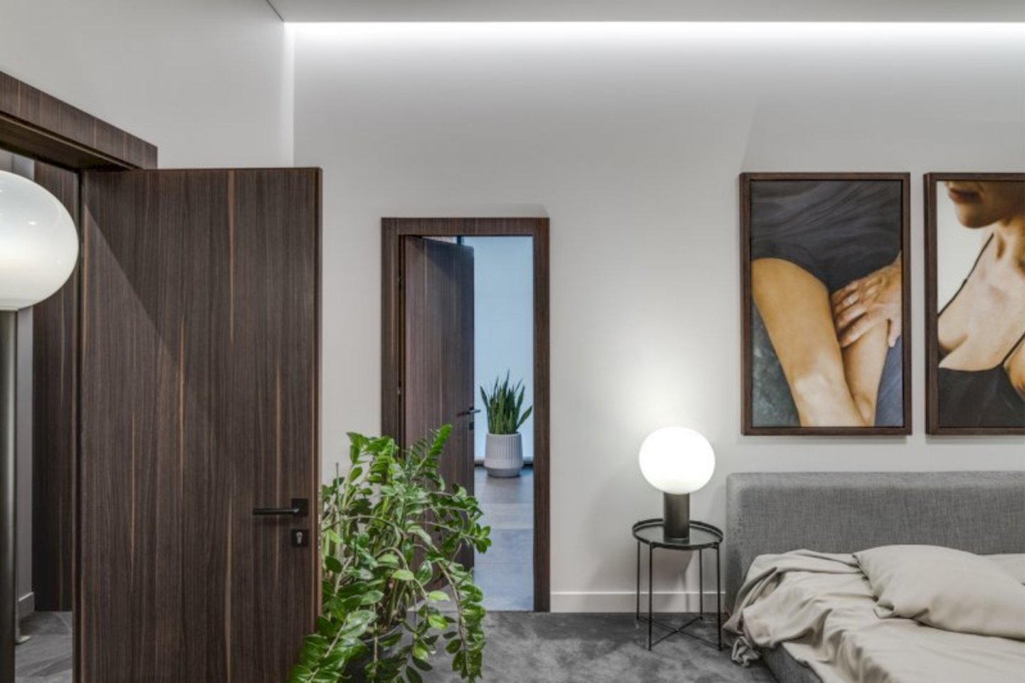 Ją vainikavo kartu su fotografe Reda Ružele specialiai šiems namams sukurtos, šeimos tapatybę perteikiančios fotografijos. Interjere dominuoja rusvi ir pilkšvi tonai, ypač daug dėmesio skirta apšvietimui. Bendrose namų erdvėse pasirinktas kiek netradicinis grindų dangos sprendimas – plytelės, o miegamuosiuose šilumos ir jaukumo suteikia kiliminė danga. Namų šeimininkų pageidauta itališka stilistika išpildyta monumentaliais baldų projektais, rafinuotų spalvų medžiagiškumu.
