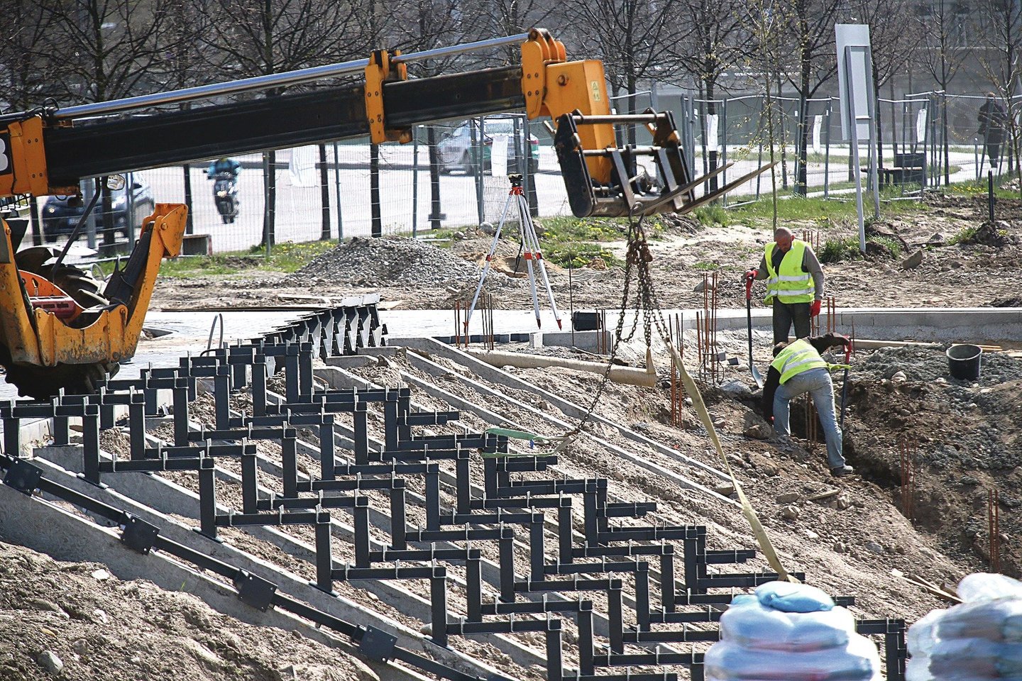 Artimiausiu metu bus pradėta lyginti dar neapželdintus plotus tarp įrenginių. Tačiau žemė dar nepakankamai sušilusi, kad būtų galima sėti veją.