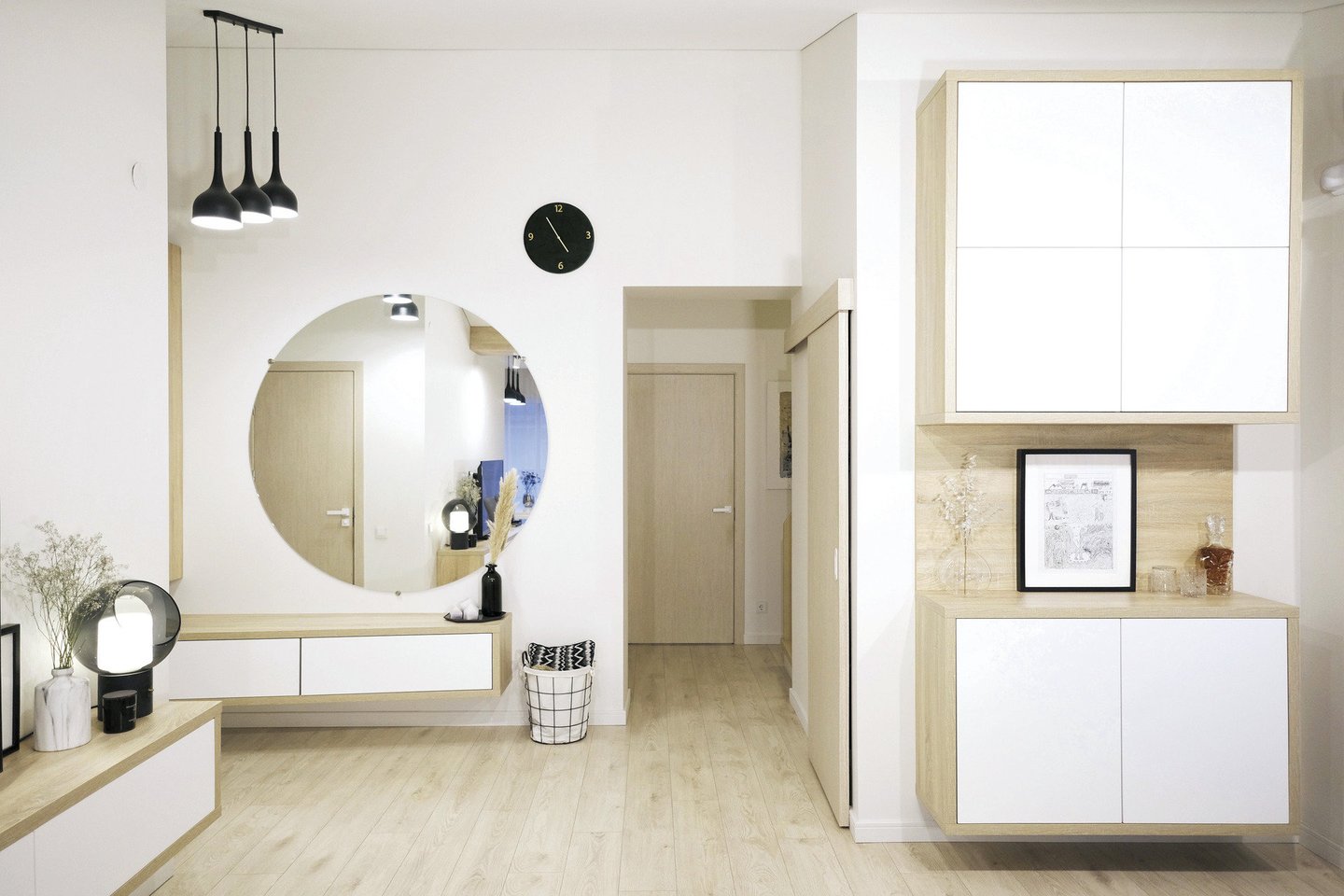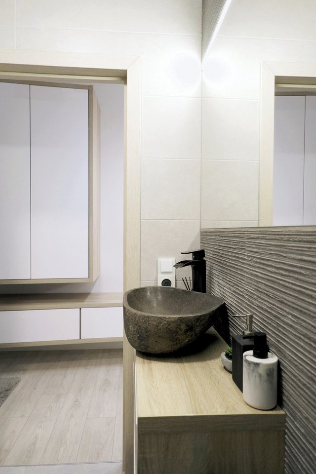 „Džiaugėmės, nors pradžioje buvo sunku patikėti, kad tai mūsų namai. Neįsigijome kvadratinės dėžutės, pavyzdžiui, koridoriuje lubos siekia daugiau nei keturis metrus. Kaip atrodys namų interjeras, žinojome iš karto – norėjome šviesių spalvų, skandinaviško stiliaus. Gyvename apsupti pušų, tad interjere daug medienos masyvo, jo elementų“, – pasakojo Akvilė.