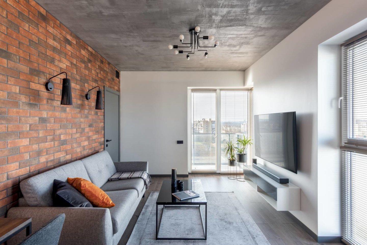 Esminiai stilistiniai sprendimai gimė iš karto – interjere turėjo atsirasti raudonų plytų sienos ir betono lubos. Toks medžiagų derinys dažnai būdingas industriniams loftų interjerams.