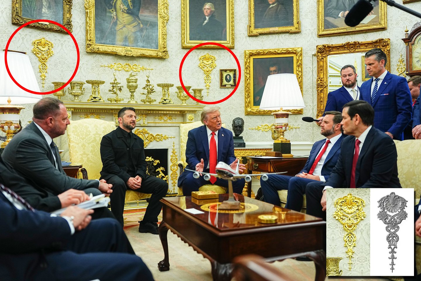 Balandžio mėnesį „Wall Street Journal“ pranešė, kad Trumpas pasamdė savo aukso meistrą, kad Ovaliniame kabinete būtų įrengtos specialiai pagamintos aukso apdailos detalės, įskaitant auksuotus raižinius ant židinio atbrailos ir lipdinį, kuris apjuosia garsiausią kabinetą pasaulyje.