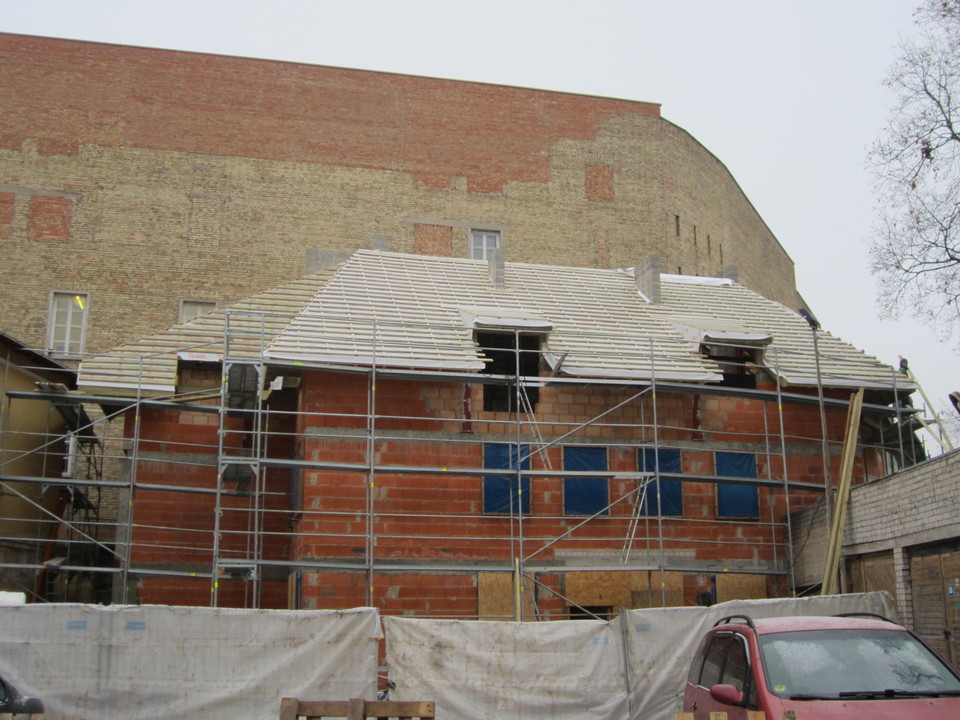 iš pradžių garažų vietoje buvo pastatytas dviaukštis pastatas. Kai šių
