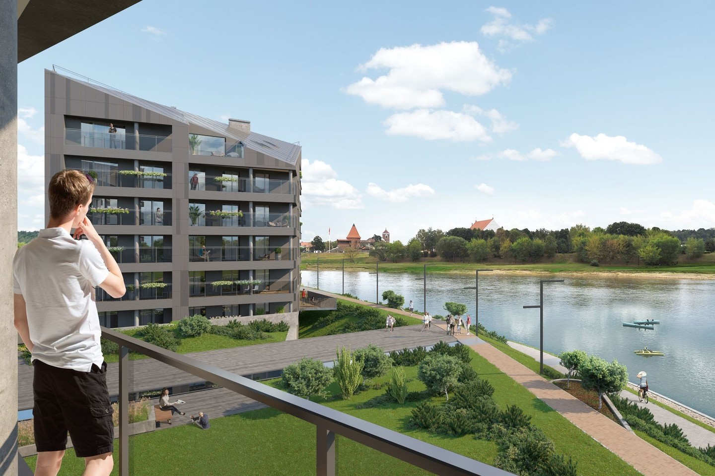 Namai suprojektuoti taip, kad darniai įsilietų į miesto panoramą. Arčiau upės bus statomi įmantrios architektūros šešių aukštų gyvenamieji namai, kurių fasadus puoš vokiškos keraminės plokštės. Jaukumo suteiks namus supančios žaliosios poilsio zonos, vaikų žaidimų aikštelės bei gėlynai.