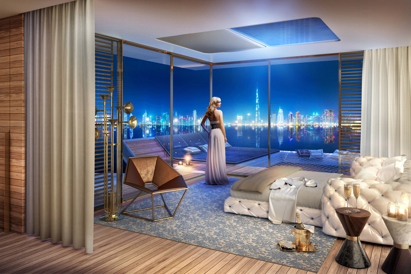 Po vandeniu esančioje 46 kv. metrų namo erdvėje bus įkurtas miegamasis bei vonios kambarys, už jų atsivers vaizdai į dirbtinį koralų rifų sodą. Šių prabangių plūduriuojančių namų gyventojai galės stebėti įvairius vandens gyventojus, tarp jų – ir jūrų arkliukus. Viršutinėje namo dalyje bus galima mėgautis saule ir poilsiu.