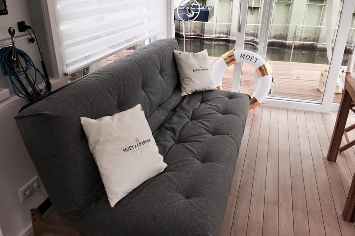 Mėgstamiausia Haroldo vieta namuose – laivagalyje įrengtas miegamasis. Rytais galima tiesiai iš miegamojo pasinerti į gaivinantį upės vandenį.