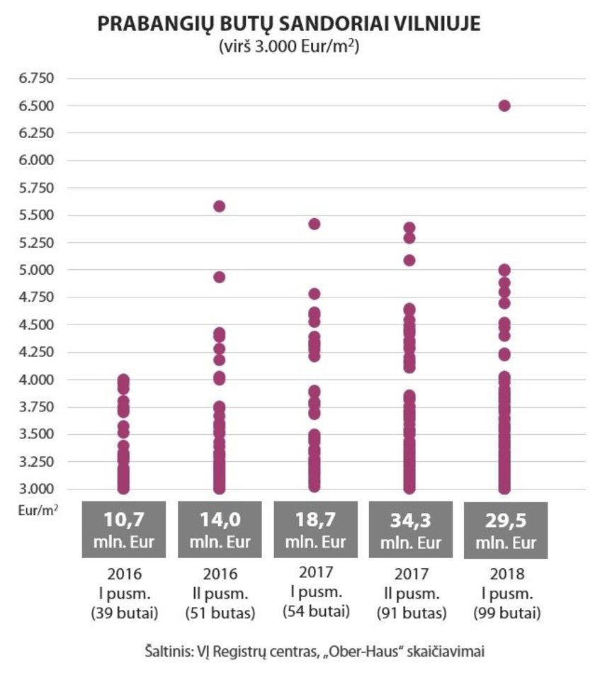 Nekilnojamojo turto paslaugų kompanijos „Ober-Haus“ duomenimis, 2013–2015 metais brangesnių butų dalis nuo visų tais metais pastatytų butų sudarė nuo 6 iki 8 procentų, o 2016 metais butų dalis jau siekė 13 proc., 2017 metais – net 18 proc.