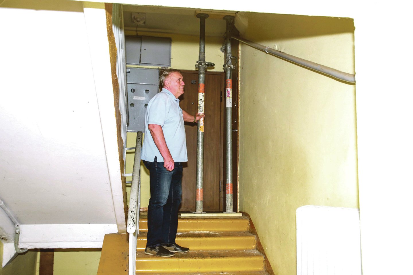 Jautriausia vieta yra laiptinės, mat atsiradus didesniam trūkiui gali nugarmėti visa laiptinė.