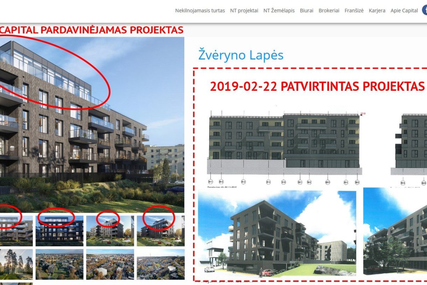Patikrinus informaciją paaiškėjo, kad pirkėjams siūlomas ne tik nesamas aukštas. Parduodamos patalpos neatitinka statybos leidime nustatytų patalpų charakteristikų – leidime statybai pirmajame pastato aukšte nurodytos komercinės patalpos internetiniame portale parduodamos kaip būstas – „loftai“, juose numatytos papildomos tarpaukštinės perdangos. Tuo būdu, neišlaikant statybos leidime nurodytų parametrų, faktiškai padidintas pastato naudingasis plotas.