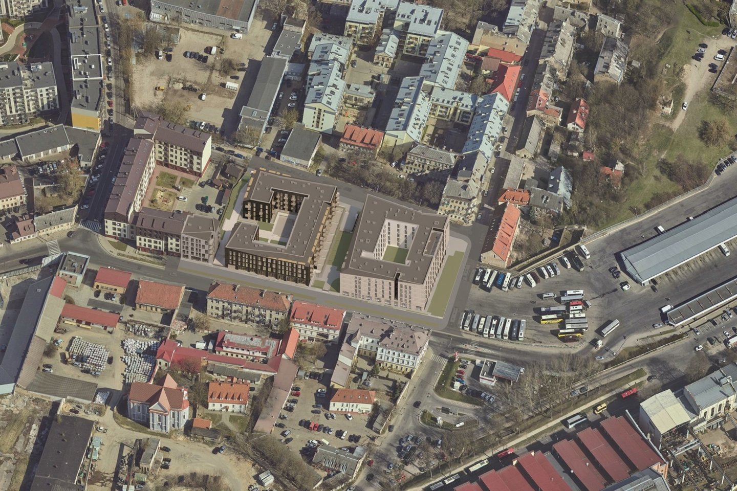Numatyta, kad pastatai formuos du vidinius kiemus, trečias kiemas bus formuojamas tarp bendruomeniško co-living ir gyvenamosios dalies pastatų, per kurį projektuojamas skersinis pėsčiųjų praėjimas, išlaikant vizualinius ryšius su Šv. Stepono bažnyčia, kurią miestas planuoja rekonstruoti bei įrengti skverą. Šv. Stepono gatvės dalis palei projektą taip pat bus miesto rekonstruojama, sujungiant dvi atskiras gatvės atkarpas pėsčiųjų zona.