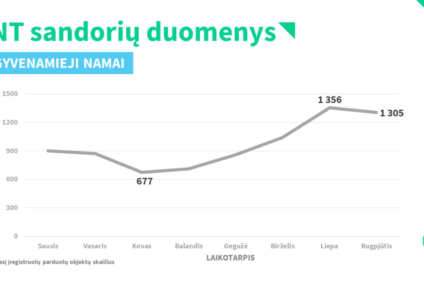 „Rugpjūtį NT sandorių rinkoje matėme iki karantino laikotarpio stebėtus įprastus įregistruotų sandorių kiekius. Vertinant pagal atskiras NT objektų kategorijas, gyvenamųjų namų rinka jau pasivijo praėjusių metų kiekius, o žemės sklypų rinka pamažu artėja prie 2019-ųjų. Butų rinkoje atotrūkis išlieka didžiausias“, – pastebi Registrų centro Duomenų sprendimų ir analizės departamento vadovo pareigas laikinai einantis Paulius Rudzkis.