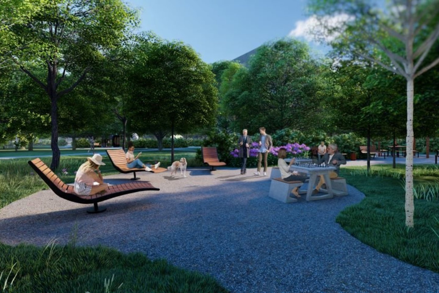 Baigiant rangos darbus teritorijoje bus pasodinta 13 naujų medžių – liepų, klevų, gudobelių. Taip pat poilsio oazės jausmą stiprins naujai pasodinti 1100 krūmų ir 45 kv. m žolinių ir daugiamečių gėlių.