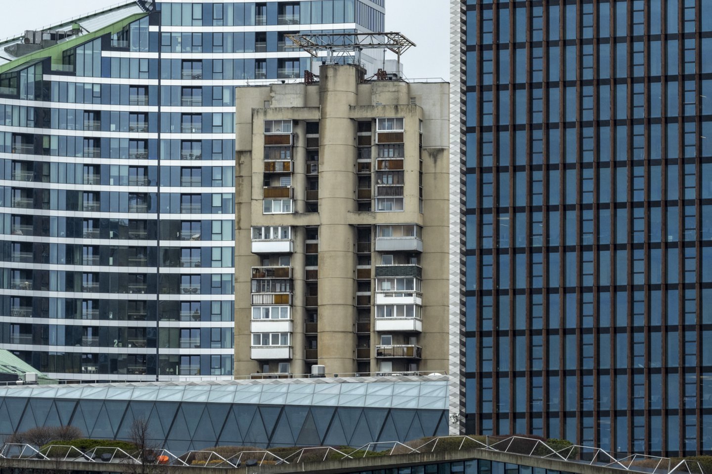 Didžiausia blizgančiais dangoraižiais apstatyto Konstitucijos prospekto įžymybė – aptriušęs 13-uoju numeriu pažymėtas šešiolikaaukštis. Apie jo modernizavimą kalbama septintus metus, bet kalbos nevirto darbais – statybininkai bijo prasidėti su šiuo namu.