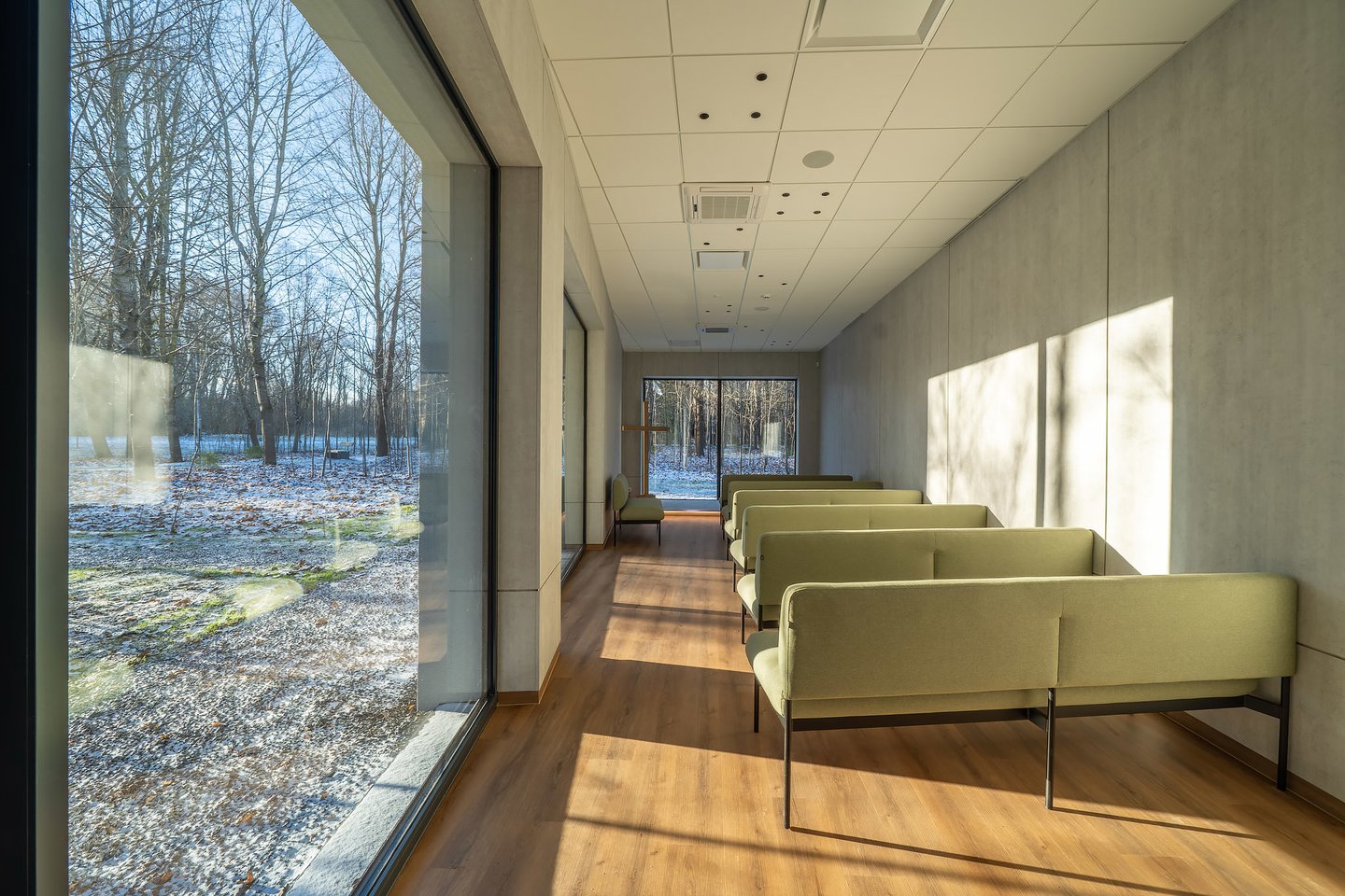 Kiekviena šarvojimo salė turi išėjimą į lauką, o parke įrengta takelių, suoliukų ir apšvietimas. Artimieji gali išeiti pasivaikščioti, pabūti gamtoje ar tiesiog ramiai pasėdėti tyloje.
