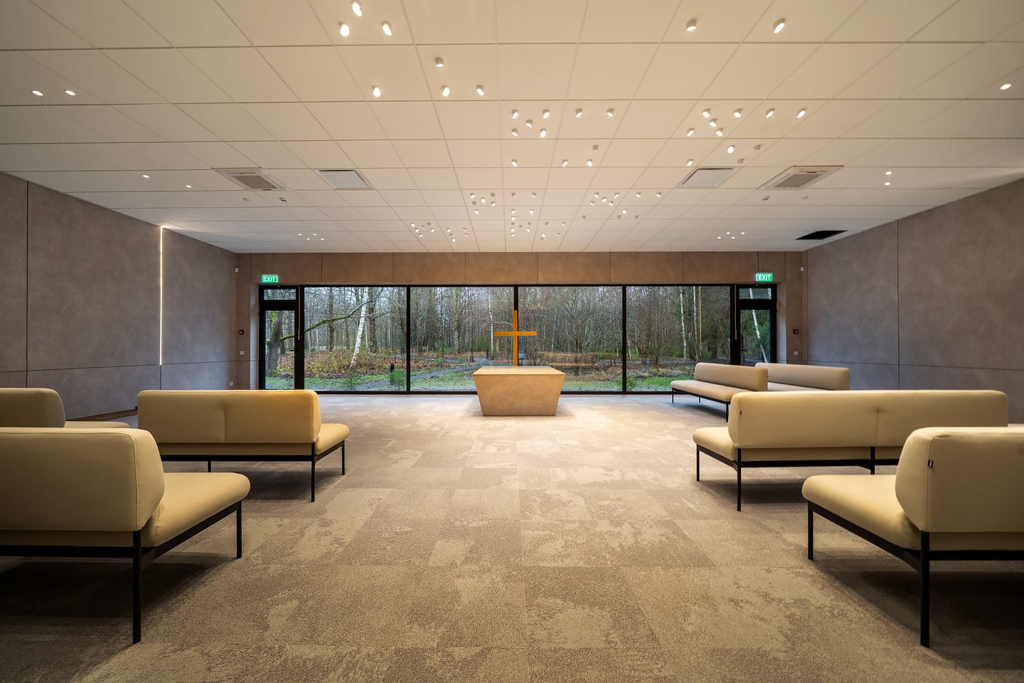 „Stengėmės sukurti aplinką, kuri primintų namus. Salėse – kiliminė danga, minkštasuoliai, šviesios spalvos, o pro didelius langus patenka daug natūralios šviesos. Norėjome, kad žmogus matytų ne sienas, o gamtą. Tokia aplinka sukuria daugiau ramybės ir bent šiek tiek palengvina sunkią atsisveikinimo akimirką“, – pasakoja J. Jurkevičienė.