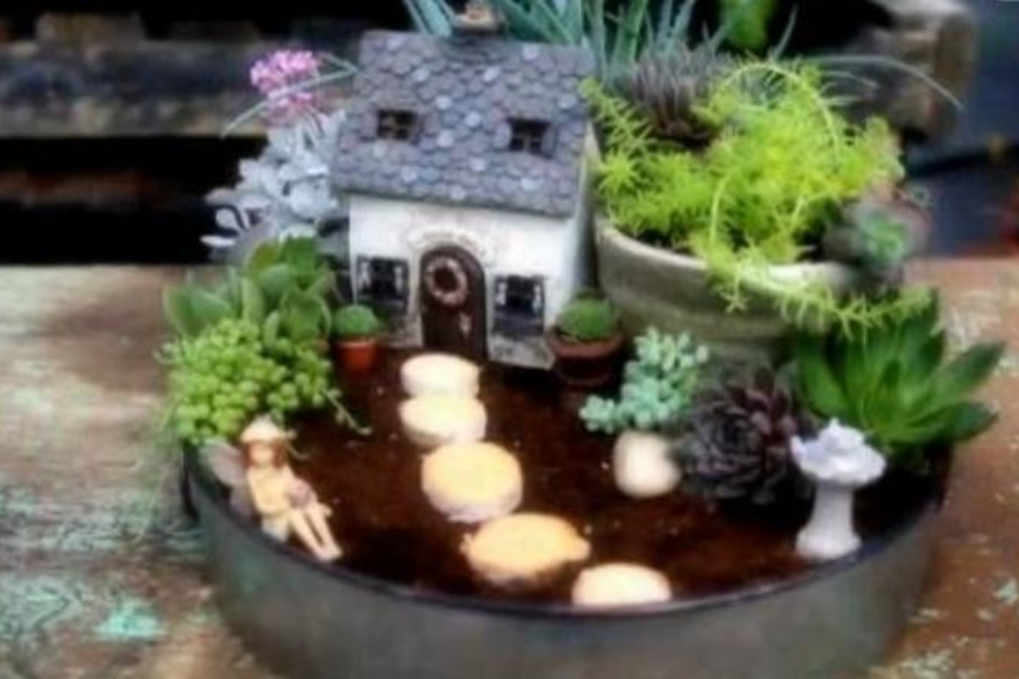 Fėjų namelį galite pastatyti dideliame vazone ar tiesiog ant žemės, gėlių apsuptyje. Taip pat šalia galite įrengti ir miniatiūrinį sodą ar tvenkinuką.