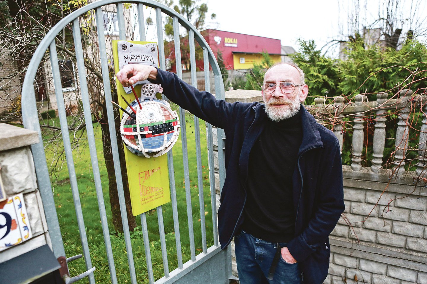 „Kai gimė anūkė, žmona nenorėjo, kad ją vadintų močiute. Pasakė, kad bus mamutė. Vadinasi, aš – mamutas. Taip atsirado mūsų namo ir kiemo pavadinimas. Ženkle, kuris pritvirtintas prie namų, pavaizdavome tarsi Žemės rutulį, nes mėgstame keliauti, taip pat į jį įkištas pieštukas, teptukas“, – pasakojo išradingas vyras.