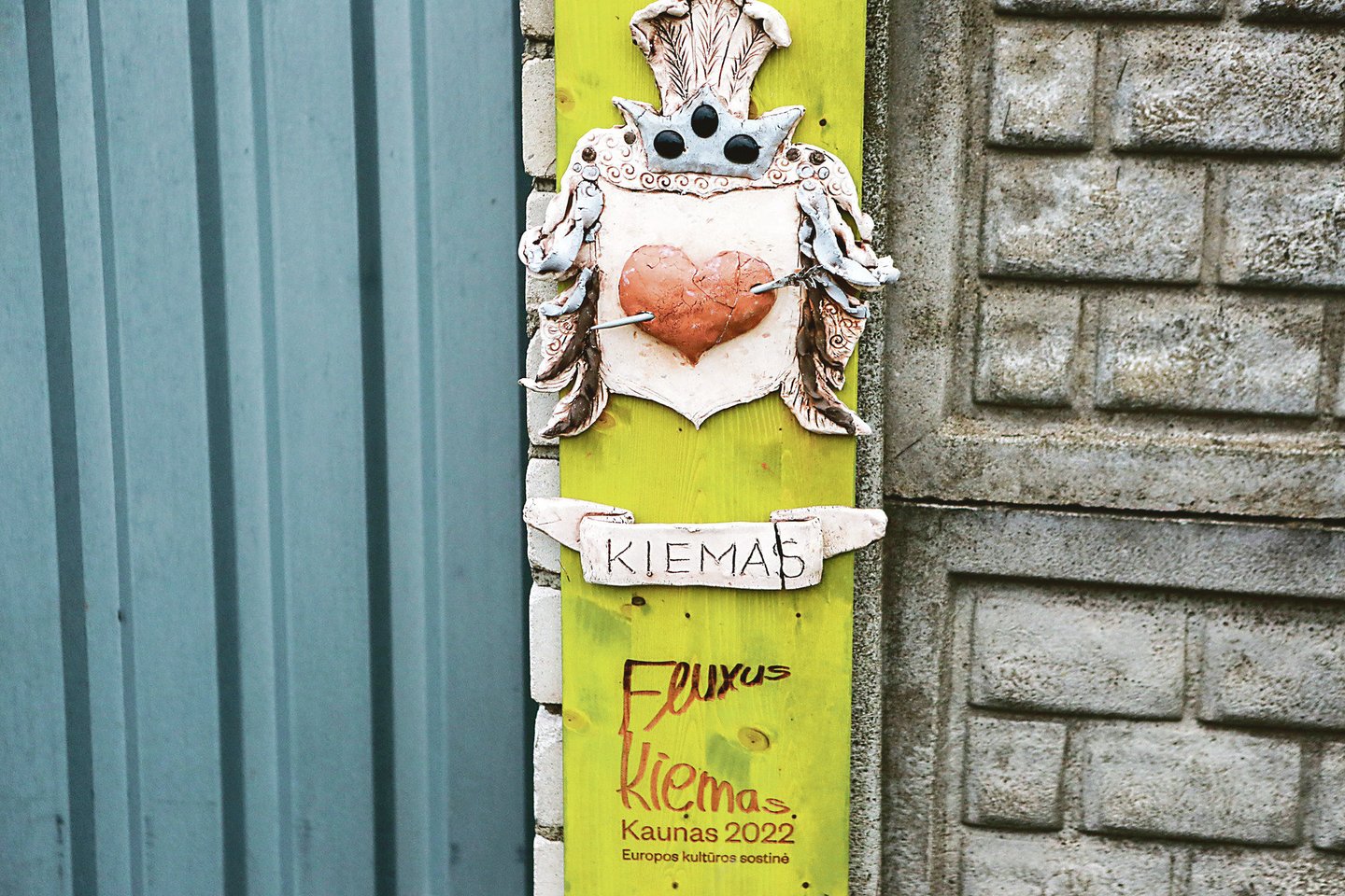 Dabar prie K.Klimavičiaus namo vartų kabo meno kūrinys su užrašu „Mamutų kiemas“.