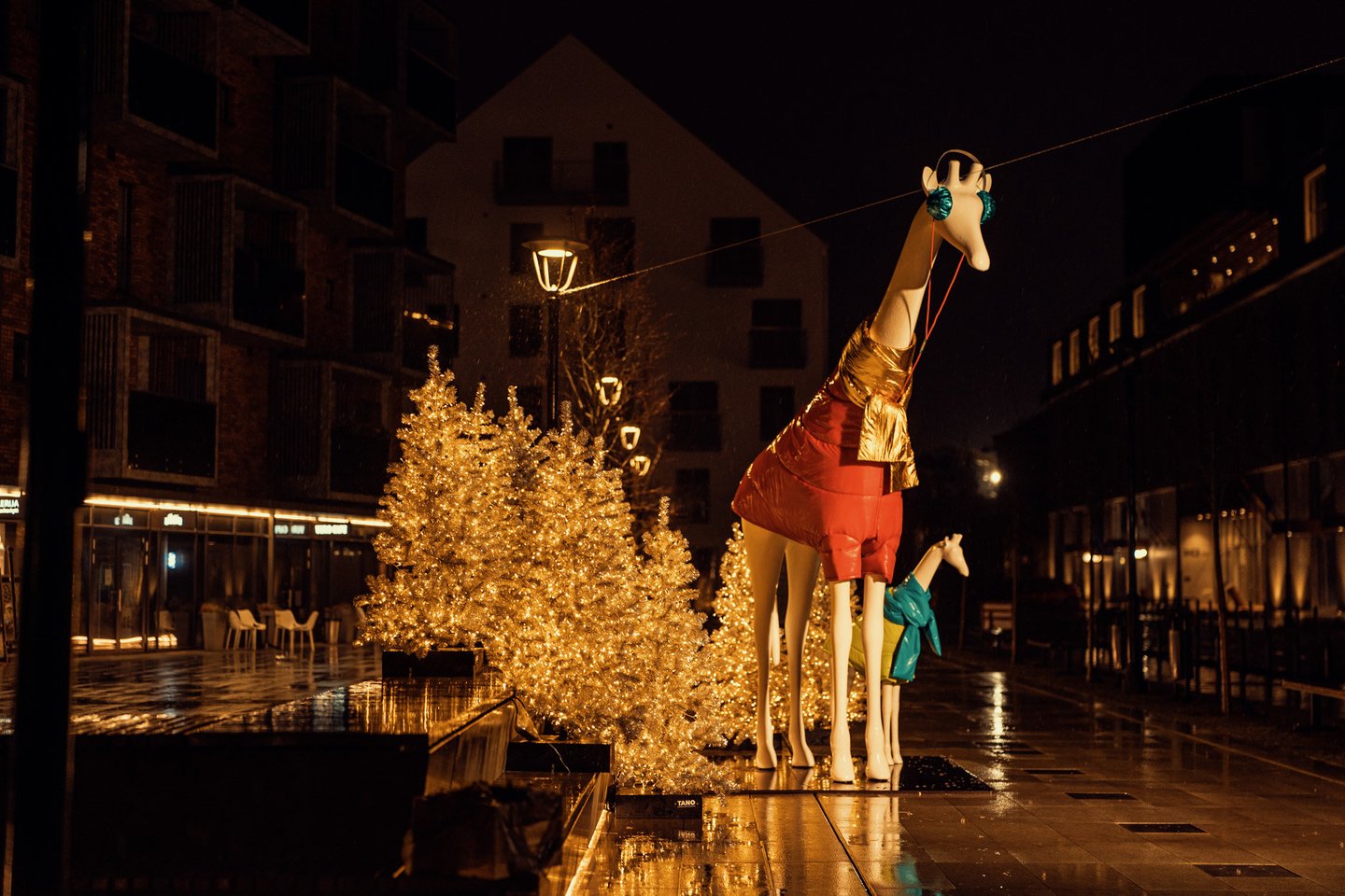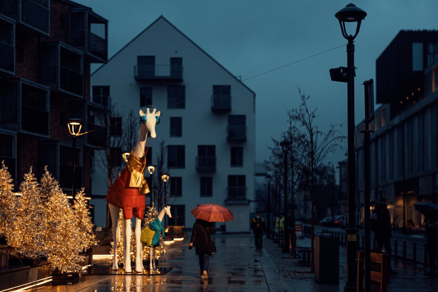 Pasak jos, bene svarbiausiu „Paupio“ kalėdiniu kvartalo akcentu tapo dvi didžiulės, įspūdingo 4 ir beveik 2 metro aukščio, pūkinėmis striukėmis ir spalvingais šalikais aprengtų žirafų skulptūros. Kodėl žirafos? Nes taip įdomiau! G. Sviderskė tikina, kad egzotiški šiltų kraštų gyvūnai buvo pasirinkti neatsitiktinai – taip ji siekė sukurti daugiau intrigos ir paskatinti praeivius pasukti galvas ieškant savų atsakymų.
