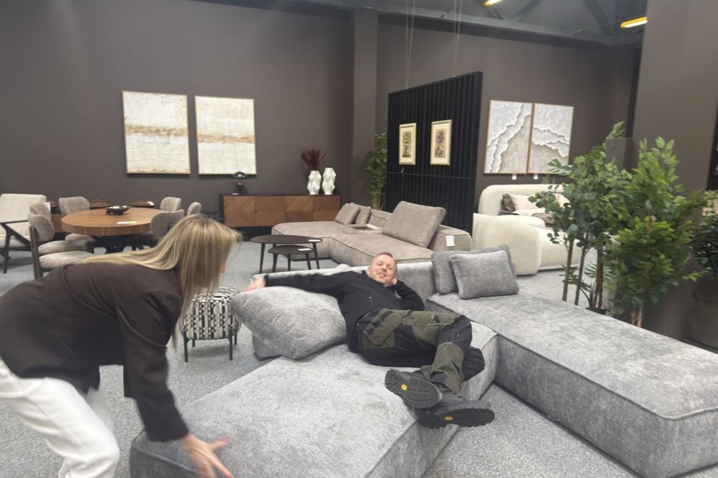 Pas Arnoldą ir Ingridą baldų parduotuvėje apsilankęs Aidas turės progą iš arti apžiūrėti, kaip dvigulė lova virsta viengule, kaip keičiamas baldų ilgis, plotis ar kaip paprastą valgomąjį stalą galima pritaikyti gausiam svečių kiekiui.