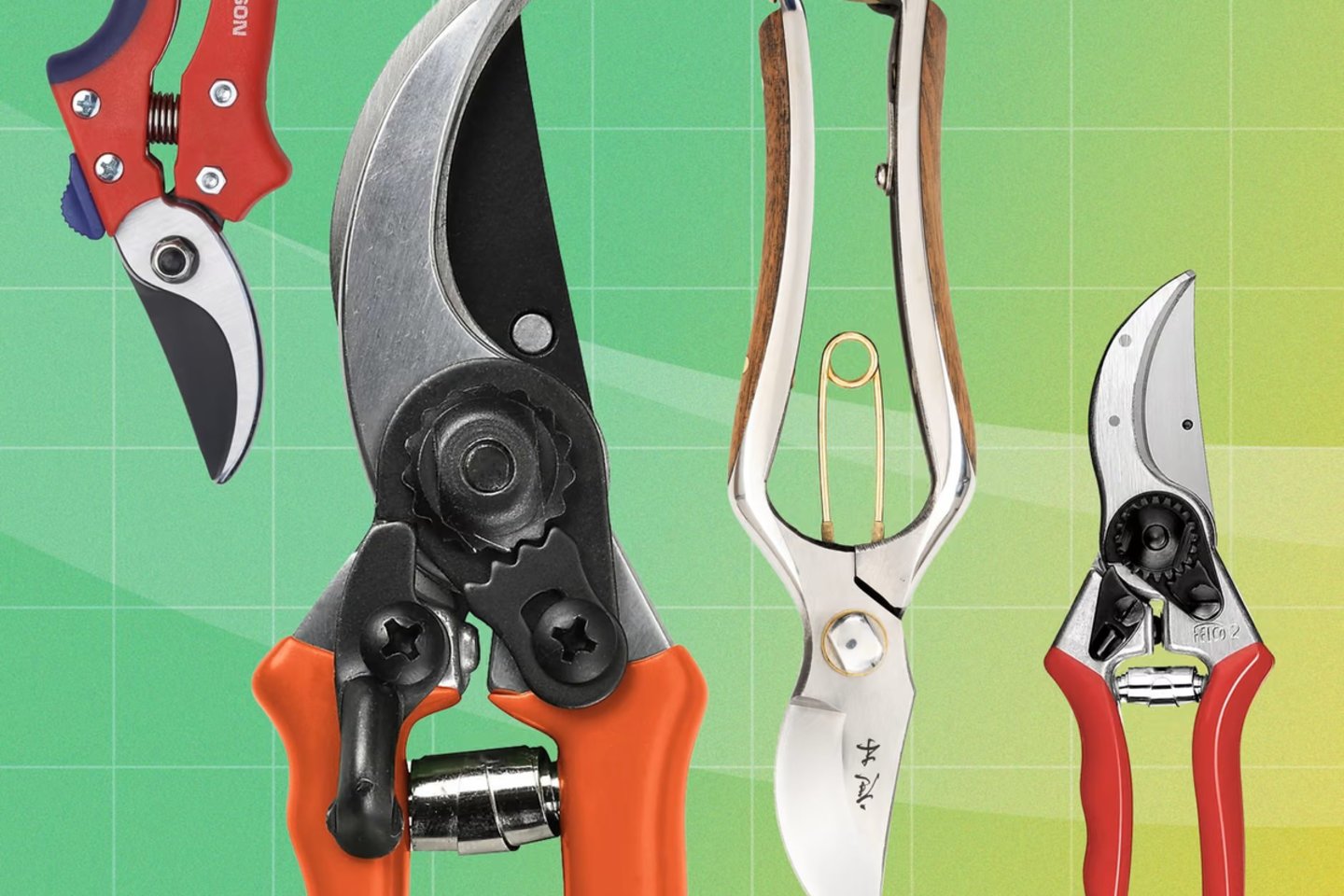Teste daugiausia dėmesio skirta modeliams su dviem prasilenkiančiais ašmenimis – būtent tokie leidžia atlikti švarų, augalui mažiau žalingą pjūvį.