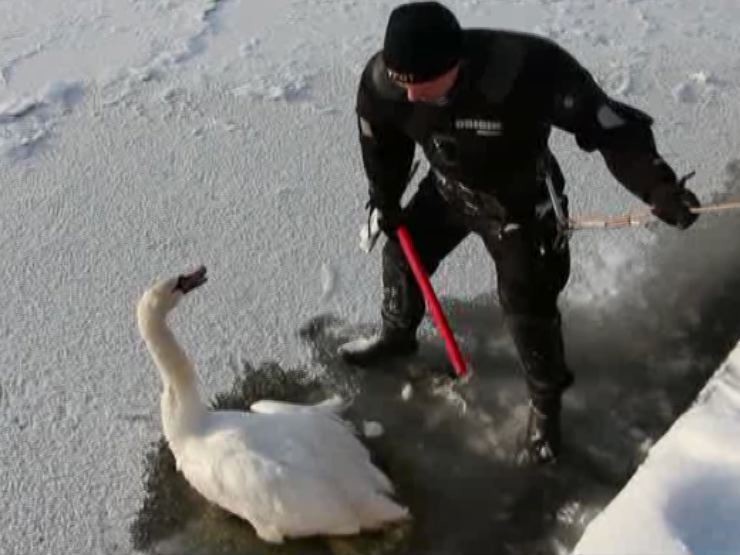 Gyvūnų globėjų asociacijos specialistams ir ugniagesiams teko gelbėti netoli Nemuno salos prišalusią gulbę. Išbadėjusį ir sulysusį paukštį iš ledo gniaužtų išlaisvino atvykę narai. Gyvūnų globėjų asociacijos specialistė Lolita Grėblikienė prieš kviečiant pagalbą gyventojų prašė įsitikinti, ar paukščiai tikrai prišalę prie ledo. Esą dažnai snūduriuojančius sparnuočius gelbėti susiruošę piliečiai apsirinka ir pagalbą iškviečia be reikalo.