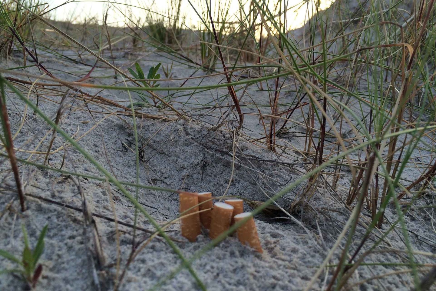 Ne mažesnė problema – cigarečių nuorūkos. Šimtus jų galima rasti bendrajame paplūdimyje, kiek mažiau vyrų ir nudistų paplūdimiuose. „Cigarečių nuorūkos aplinkoje gali išbūti nesuirusios ilgą laiką. Jose gausu toksinių medžiagų, o patekusios į vandenį šios medžiagos išsiskiria į aplinką ir naikina viską kas gyva“, – primena M. Norbutas.