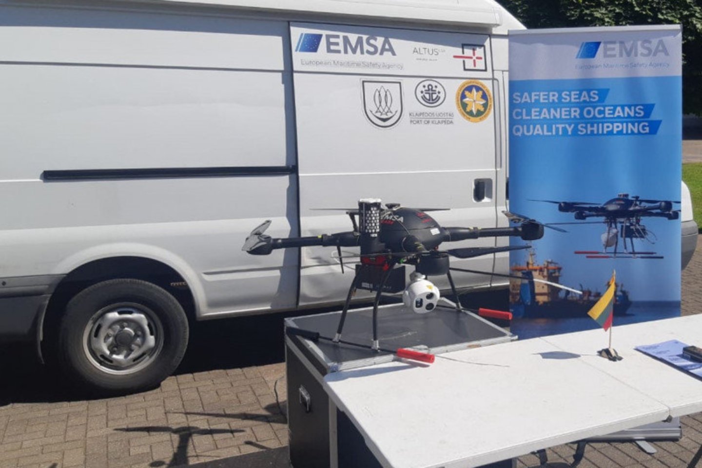 Bepiločių orlaivių paslaugas Lietuvoje suteikia Europos jūrų saugumo agentūra (EMSA), dronus pilotuoja įmonė ALTUS LSA, o dronų informacija naudojasi net trys Lietuvos institucijos – Aplinkos apsaugos departamentas, Žuvininkystės tarnyba bei Klaipėdos valstybinio jūrų uosto direkcija. Projektą vykdyti padeda Karinės jūrų pajėgos ir Valstybės sienos apsaugos tarnyba.