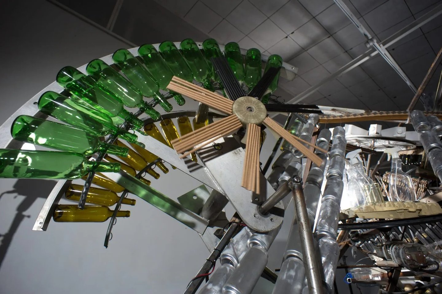 Grojančią 6 metrų pločio kinetinę skulptūrą iš pakuočių kūrė garsūs kino dailininkai, dekoracijų kūrėjai Audrius Pukšta ir Ingrida Pukštė. Judanti instaliacija buvo eksponuojama Vilniuje, Naujamiestyje veikiančioje meno galerijoje TSEKH.