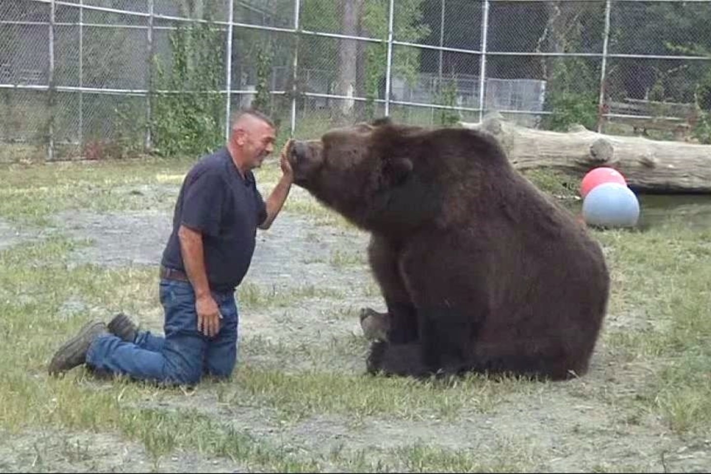 Nors daugeliui susidūrimas su meška akis į akį prilygtų košmarui, vienas amerikietis pats rūpinasi net keliais tokias gyvūnais. Ne tik rūpinasi, bet ir drąsiai leidžiasi apkabinamas kone septynis šimtus kilogramų sveriančios meškos ir leidžia jai pasiimti maisto iš savo burnos. Kartu su žmona jis namuose įkūręs apleistų gyvūnų centrą ir čia augina net 11 meškų.