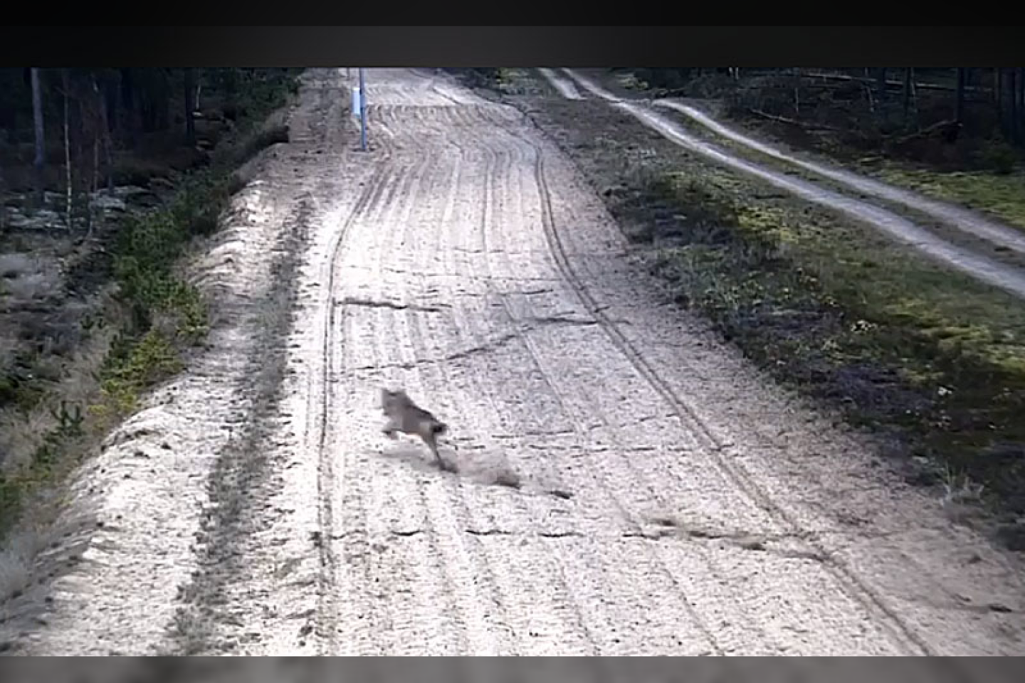 Paviešintame vaizdo įraše matyti, kaip per suartą valstybės sienos ruožą iš Baltarusijos nuskuodžia stirna. Po sekundės iš paskos pasirodo ir vilkas.
