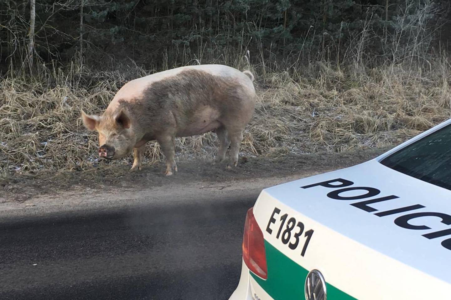Kadangi kiaulė galėjo sukelti grėsmę kitiems eismo dalyviams, pareigūnai susisiekė su naminio gyvūno šeimininke ir pranešė apie augintinės išdaigas“, – pranešė policijos pareigūnai.