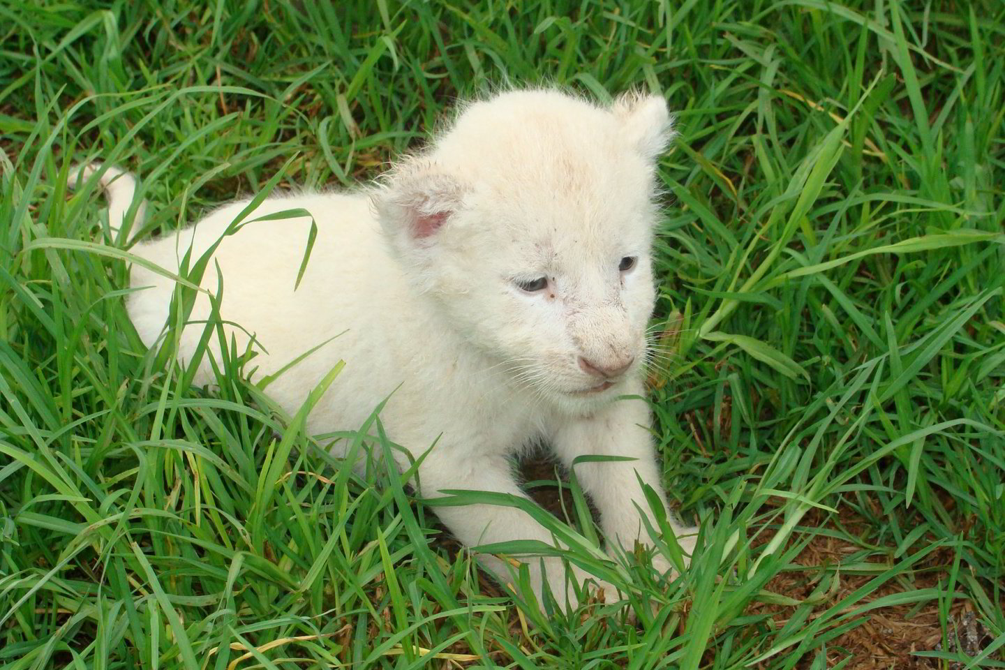 „Priėjau arčiau ir pamačiau mažytę baltojo liūto galvą. Jauniklis buvo įsitaisęs šalia savo motinos“, – pasakojo gamtininkas. Kaip paaiškėjo vėliau, tai vienas iš keturių mažylių, kuriuos atsivedė liūtų pora.