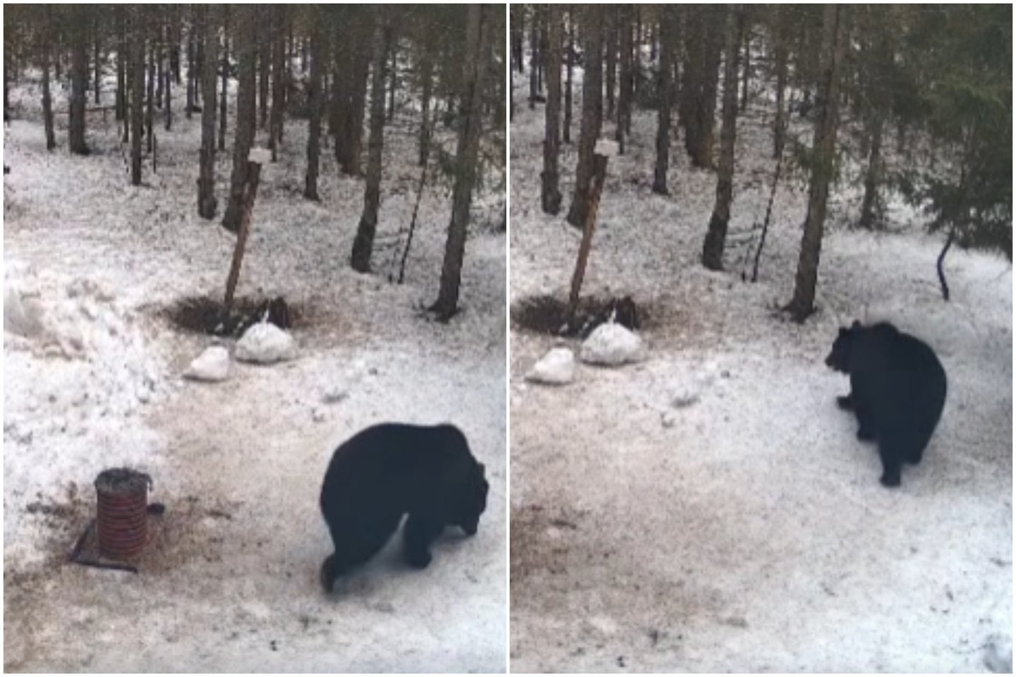 Kaip rašoma minėtoje paskyroje, kovo 5 d. pirmoji meškutė pasirodė Ignalinos rajono apylinkėse, o štai antroji nuolatinė Šimonių girios gyventoja medžiotojų įrengtoje viliojimo vietoje apsilankė kovo 9 d.