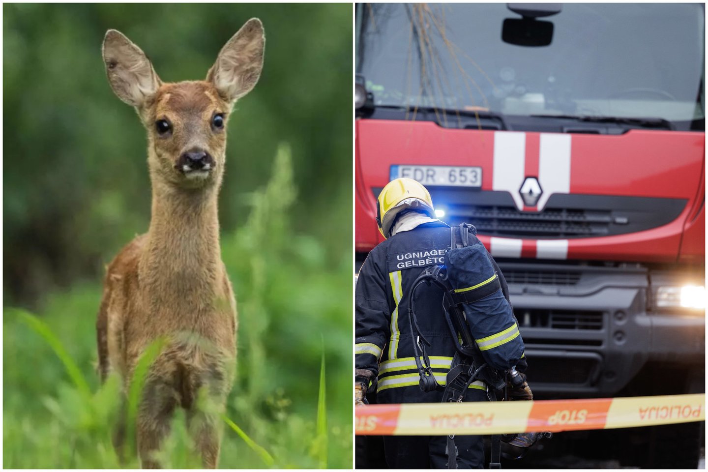 Ugniagesiai stirną išlaisvino ir perdavė atvykusiems medžiotojams.