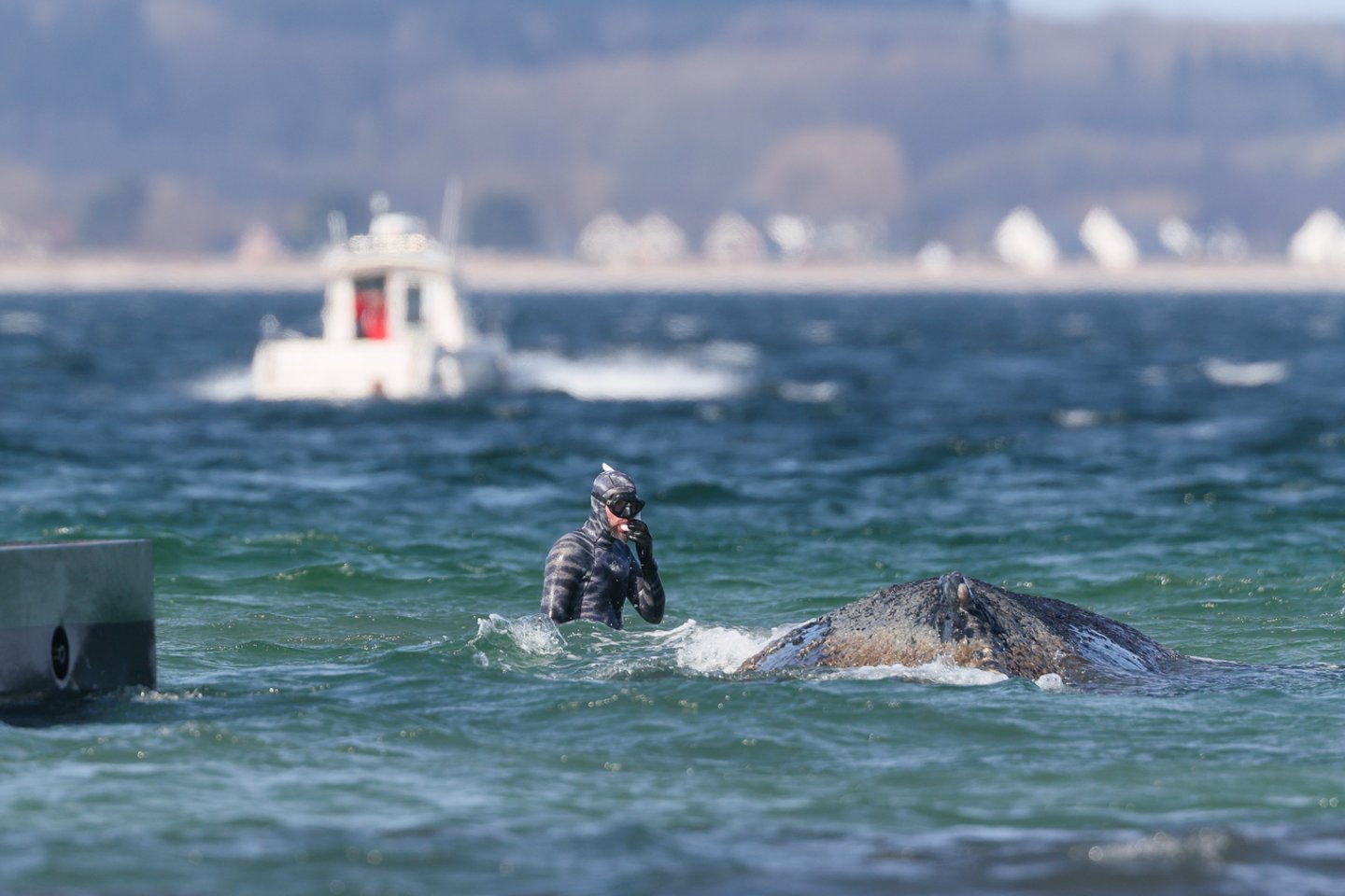 R. Lehmannas paaiškino, kad dabar svarbiausia, jog šis 12–15 metrų ilgio jūrų žinduolis liktų atvirame vandenyje ir, jei įmanoma, pasiektų Šiaurės jūrą.
