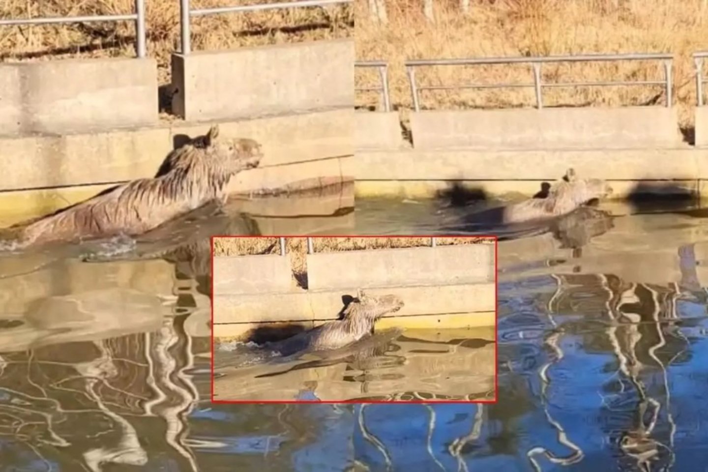 Tačiau gyvūnui į krantą iš vandens išlipti neleido aukšta bei stati betoninė krantinė.