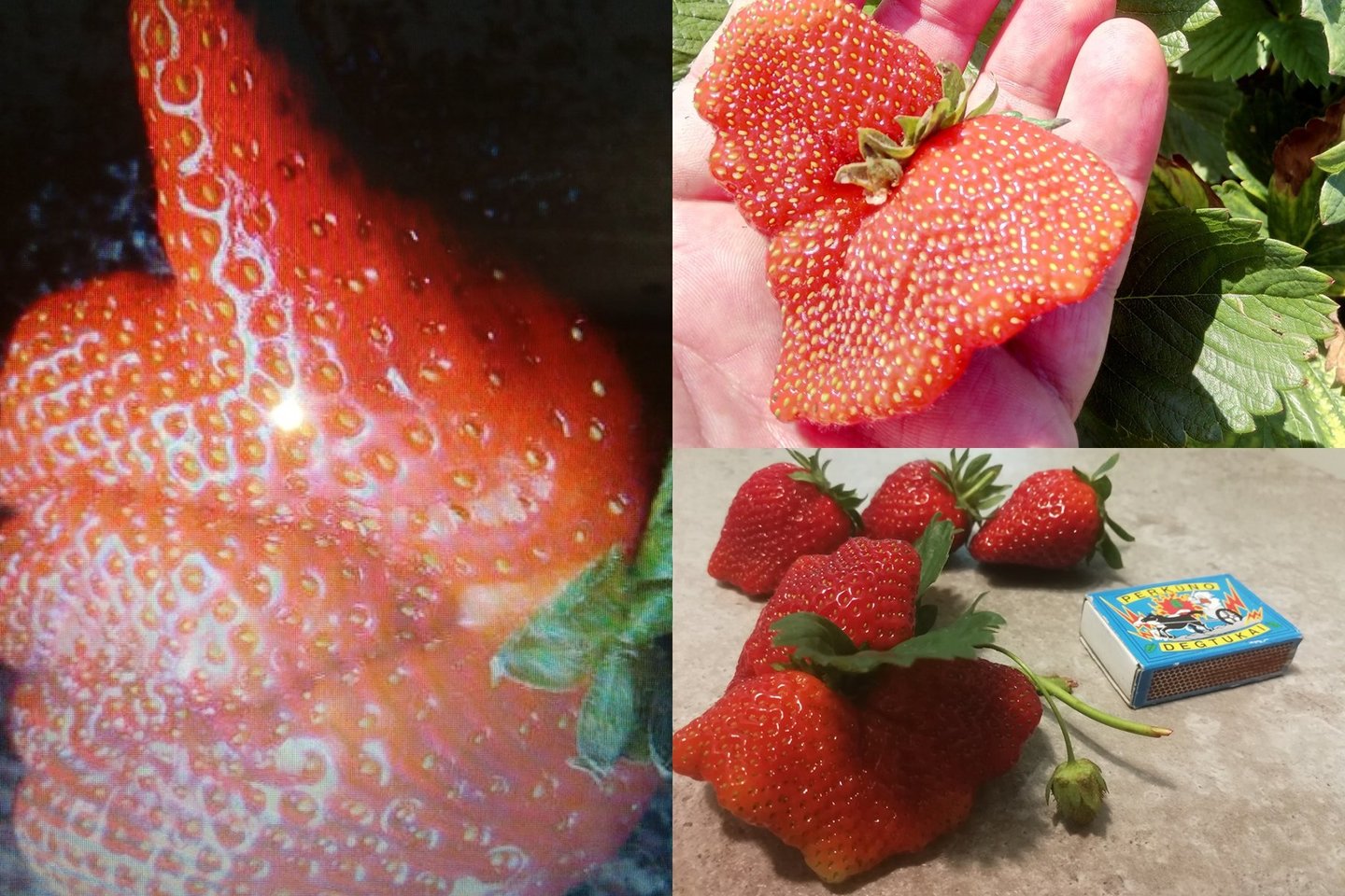 Na, o po pusšimtį gramų sveriančios uogos degutiškių laukuose – visai įprastas ir nieko nestebinantis reiškinys. Kur kas labiau stebina neįprastos uogų formos. Pavyzdžiui, pernai viena uoga priminė sparnus išskleidusį drugelį.