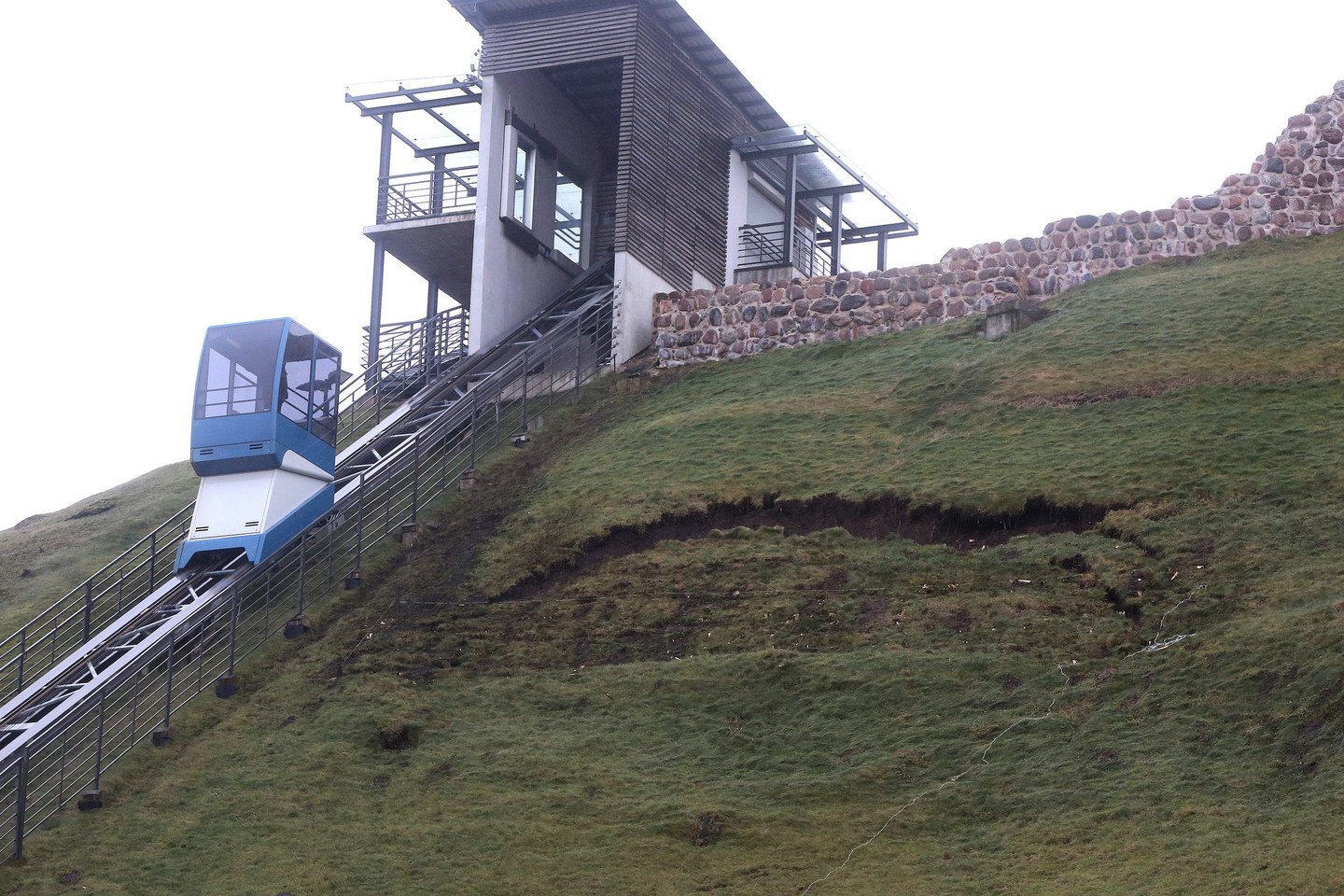 geotekstile ir velėna padengtoje šlaito dalyje. Dėl to šis šlaito