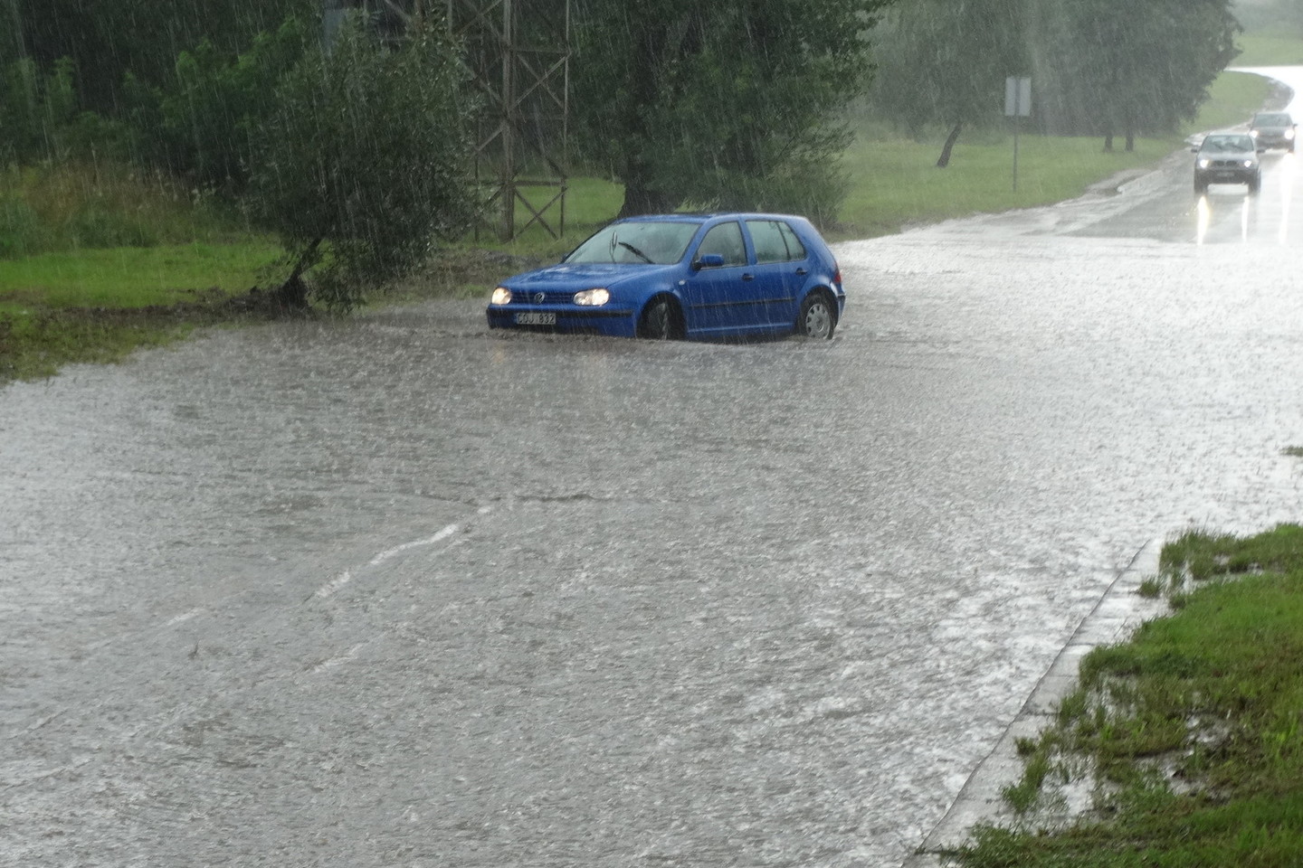 Maždaug 100 metrų ilgio Biruliškių gatvės atkarpa atsidūrė po vandeniu, kurio gylis vietomis siekė pusę metro ir daugiau.