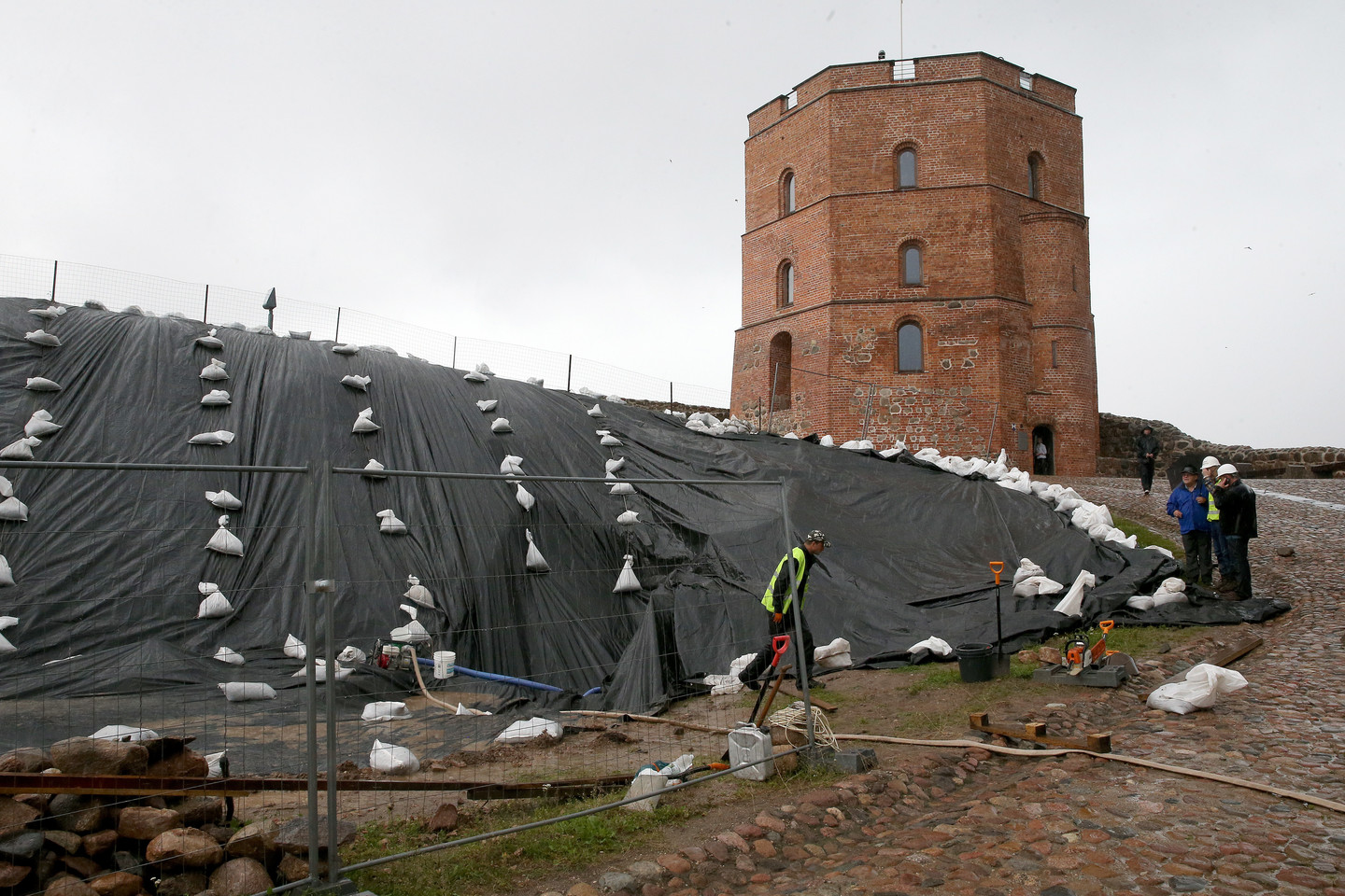 Lenkų delegacijos atstovas Wojciech Brochwicz-Lewinski (Voicechas Brochvičius Levinskis) BNS pasakojo, kad ant Gedimino kalno viršaus esantis molio sluoksnis nesulaiko vandens – jame yra daug pralaidžių vietų.