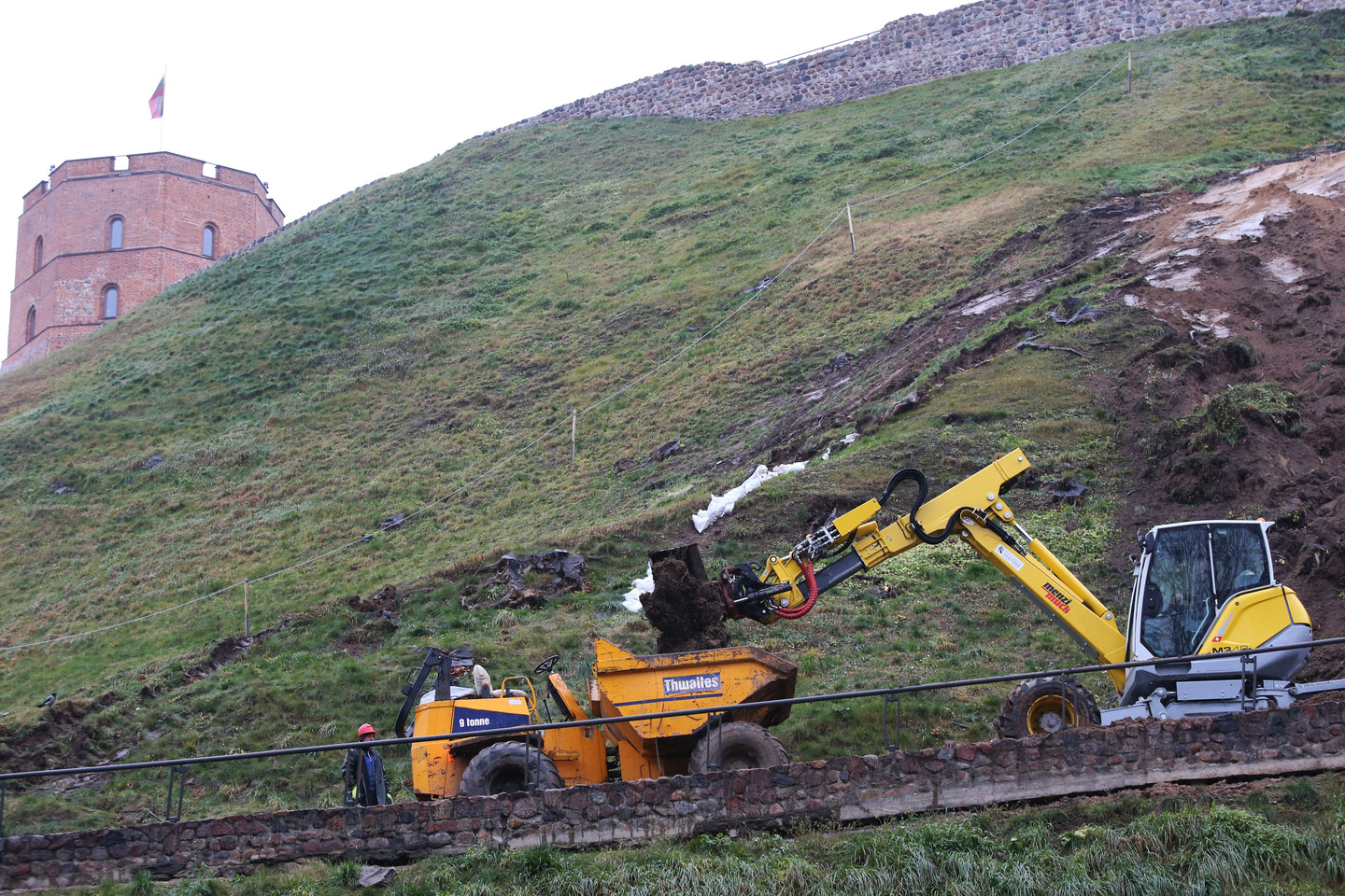 Vienas praeivis nufilmavo, kaip jo akyse slenka Gedimino kalno šlaitas. Žemė byrėjo visą pusdienį, galiausiai nugarmėjo ne tik storas velėnos sluoksnis, bet ir akmenimis grįstas pėsčiųjų takas, kuris dabar uždarytas. Tačiau valdžia ramina – kalnas bus išsaugotas.