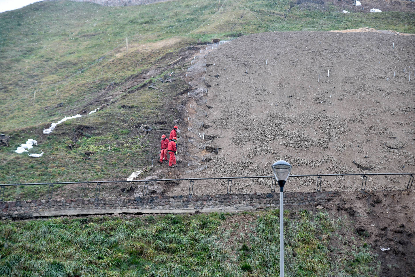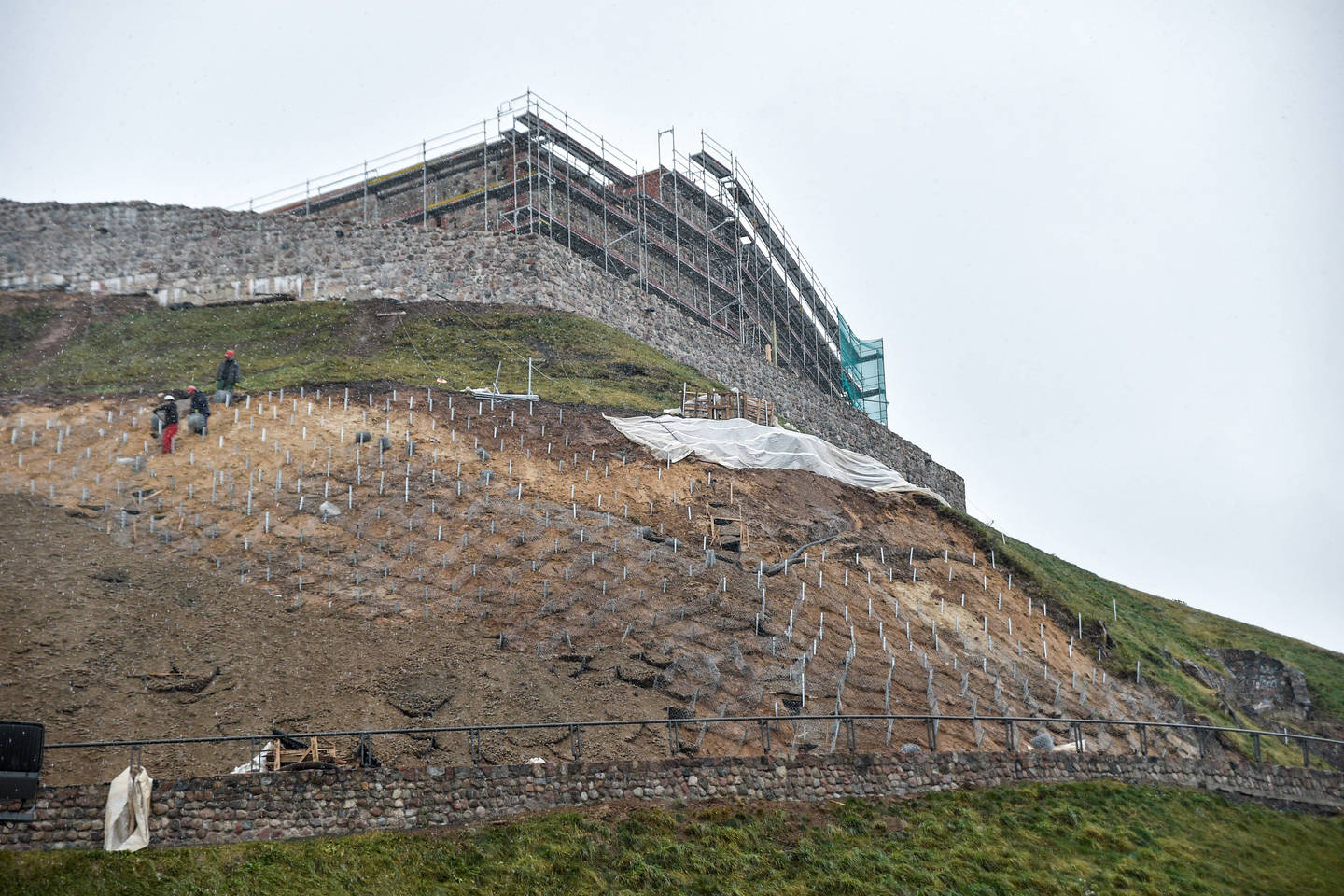 Šiaurės vakarinį šlaitą taip pat planuojama užsėti giliai šaknis įleidžiančią žole, ji, anot ministerijos atstovo, yra efektyvesnė priemonė, nei krūmai ar medžiai.