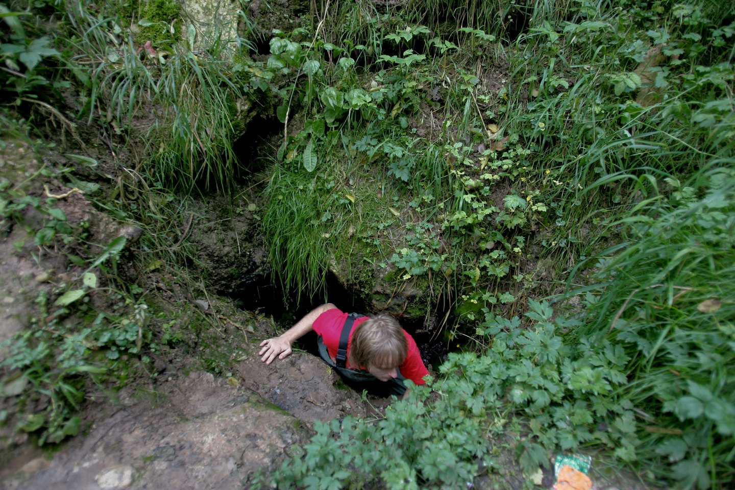 Šis, surišęs kelias vadeles ir vienu galu persijuosęs, o kitą apsukęs apie medį, nusileido į gilią prarają, kur inkšdamas plūduriavo skalikas. Susirinko nemažai smalsuolių. Ilgokai palaukus, bet vis negirdint sutarto signalo, buvo nekantriai timptelėtos aukštyn vadelės ir ištrauktas … nebegyvas šuns gelbėtojas. Apsižiūrėta, kad be pėdsakų kiaurymėje jau dingęs ir numylėtasis skalikas.