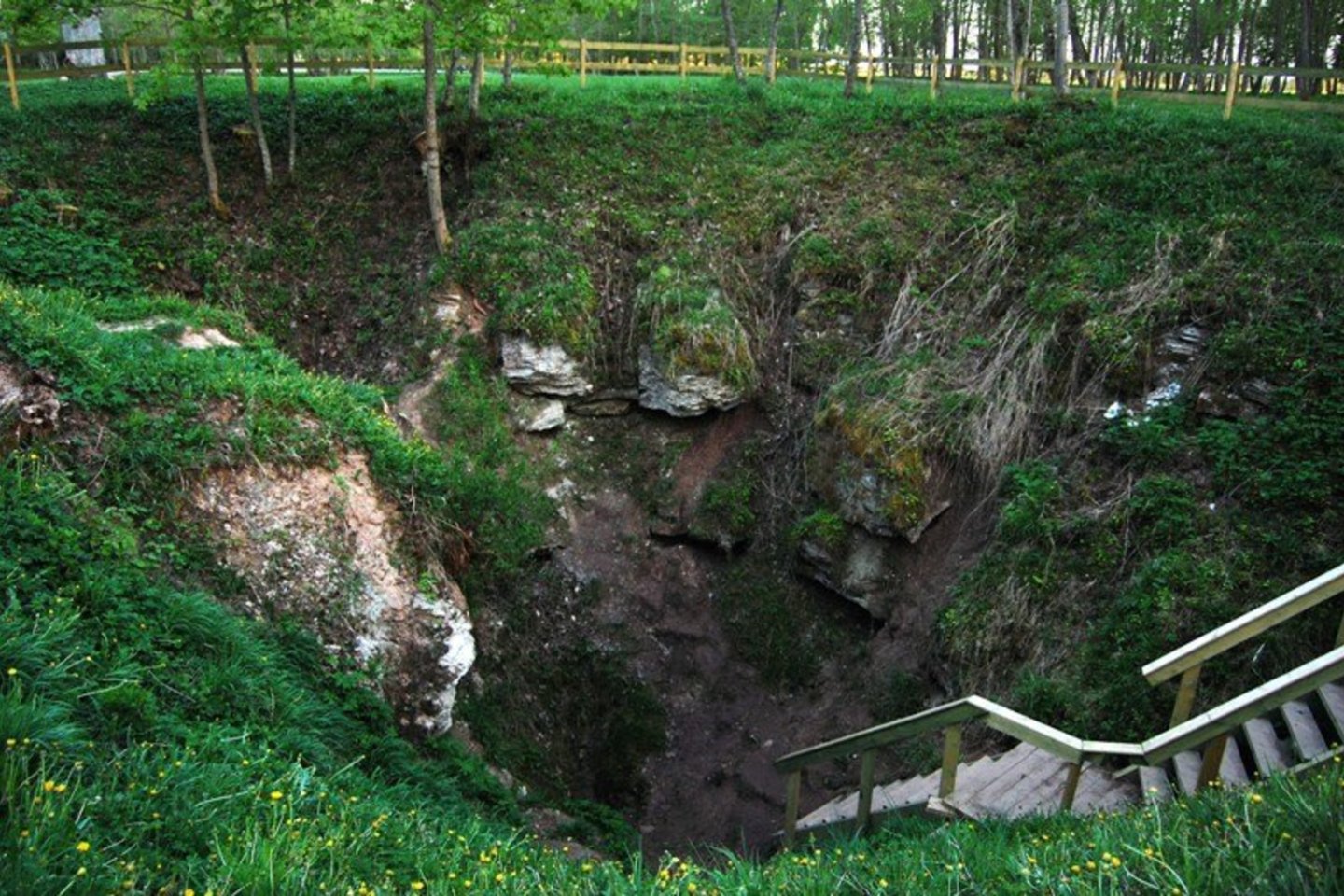 Duobės dugne yra atvira kiaurymė. Olos sienose matosi viršutinio devono sistemos uolienos – dolomitas, gipsas, mergelis. 9 m gylio karstinės įgriuvos dugne yra 5 atšakos (Šlapioji ola, Siauroji landa, Šikšnosparnių landa, Rupūžės ola) ir 1,5 m gylio požeminis ežeriukas.