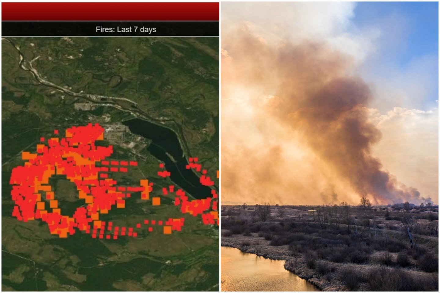 Kaip rodo NASA portalas FIRMS, pateikiantis palydovų duomenis apie gaisrus visame pasaulyje, gaisras liepsnojo maždaug už 500 m nuo Černobylio sprogusį 4-ąjį bloką dengiančio naujojo patikimo apsauginio gaubto (New Safe Confinement) pramoninės aikštelės.