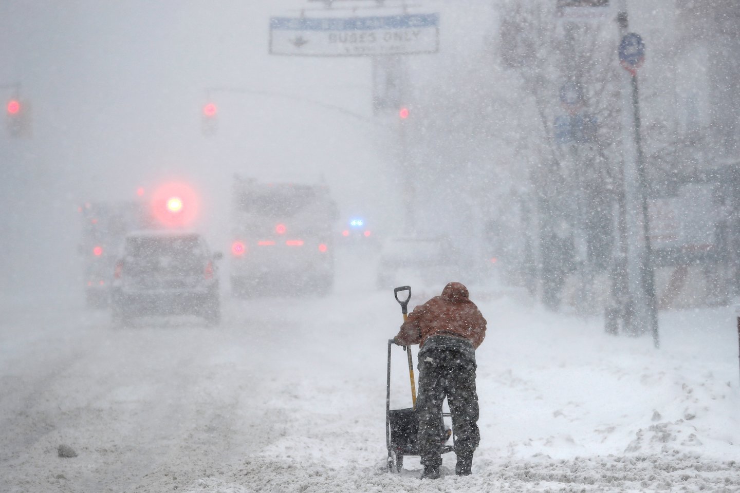 Niujorko miesto gatvėse, ir šiaip ištuštėjusiose dėl koronaviruso pandemijos, darbavosi druskos barstytuvai ir sniego valytuvai, o meras Billas de Blasio paskelbė, kad nedaugelis vaikų, jau spėjusių sugrįžti į klases, antradienį taip pat turės likti namie.