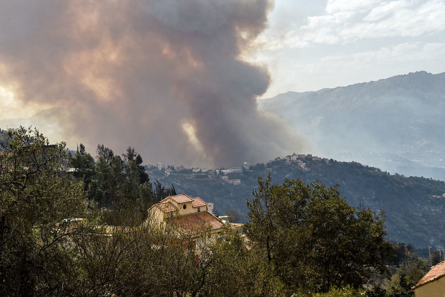 Socialiniuose tinkluose paskelbtose nuotraukose matyti milžiniškos liepsnos ir nuo jų kylantys dūmų debesys, užtraukę dangų virš ant miškingų kalvų įsikūrusių kaimų Kabilijos regione, į rytus nuo sostinės Alžyro.