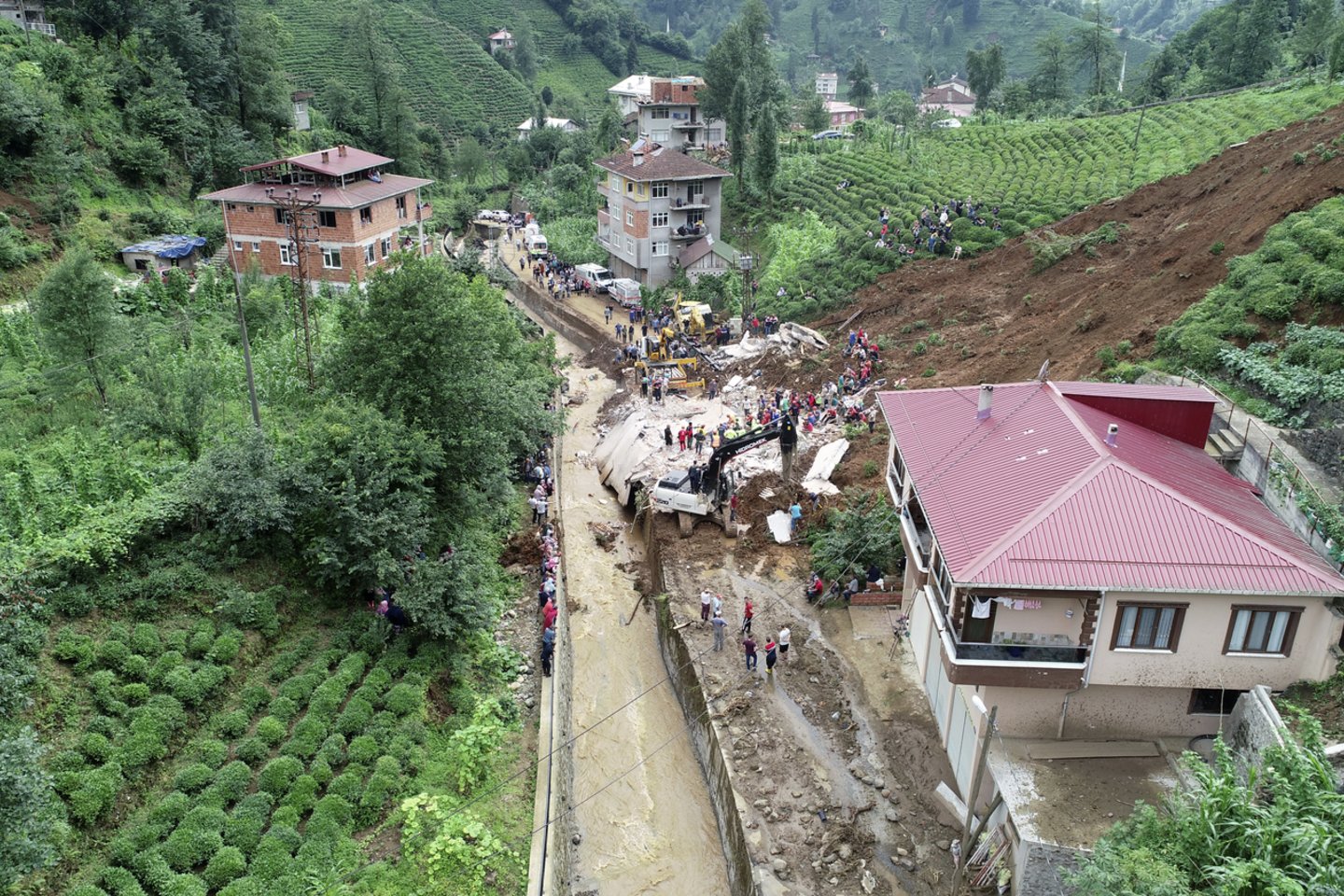 Sinopo provincijoje esančiame Ajandžiko miestelyje, kur išsiliejus iš krantų upeliui sugriuvo mažiausiai vienas namas, gyventojai buvo sraigtasparniais perkeliami iš namų stogų į saugią vietą. Miestelio ligoninė, kurioje buvo 45 pacientai, įskaitant keturis gydytus intensyviosios terapijos skyriuje, atsargumo dėlei buvo evakuota, informavo Anatolijos naujienų agentūra.