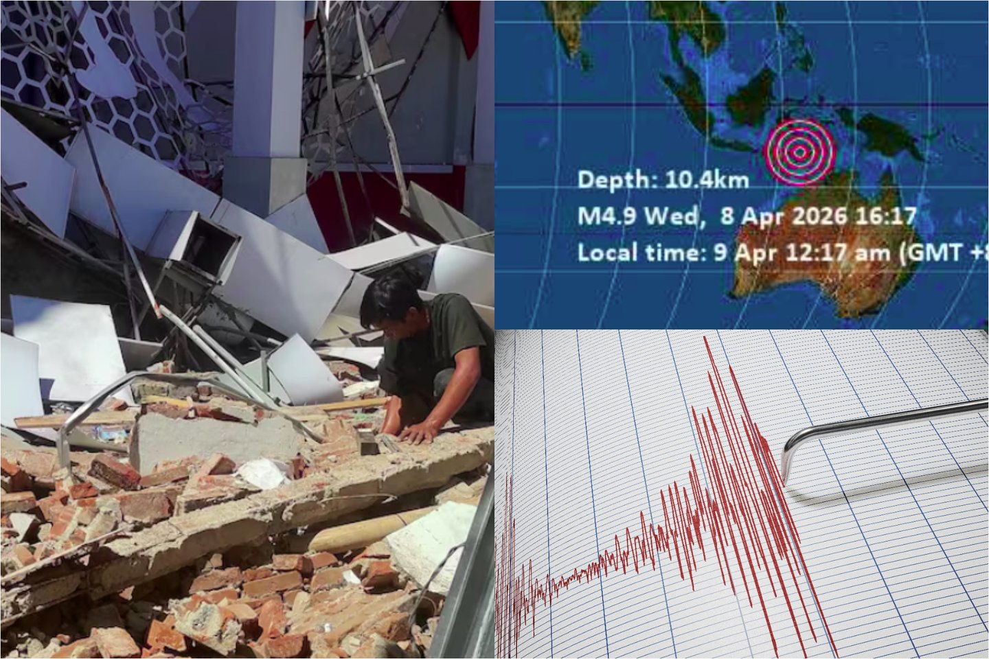 JAV geologijos tarnyba pranešė apie smūgį trečiadienį prieš pat vidurnaktį 10,4 km gylyje, maždaug už 104 km į rytus nuo Maumerės, Rytų Nusa Tengaros provincijoje.