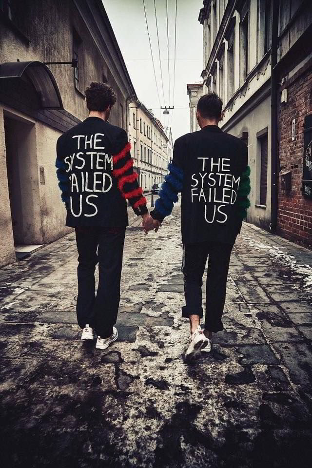 „The system failed us (sistema sužlugdė mus, – aut. past.)“, – rašoma ant vaikinų dėvimų bliuzonų.